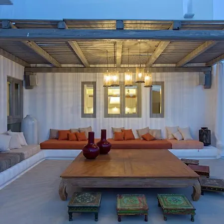 Casa Di Luna House Main Kalafatis s soukromým plaveckým bazénem s 5 ložnicemi je vybavena terasou s výhledem na zahradu. Pláž Kalafatis je 1 km od tohoto ubytování, zatímco Mykonos Vioma Organic Farm je 2 km daleko.
